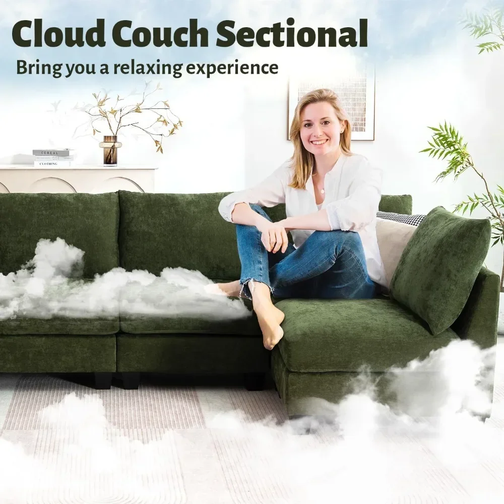 - Comfortable Seating of Cloud Couch Sectional: The modern couch boasts back cushions filled with high-resilience foam that fits your back’s natural curves, while seat cushions use a spring-enclosed foam design for soft, supportive seating. Each 27.95-inch wide and 22.05-inch deep seat offers ample space for ultimate relaxation