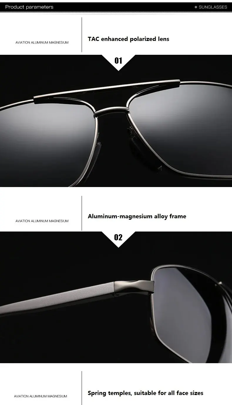 • Aluminium Magnesium Frame :Crafted from durable aluminium magnesium, these sunglasses offer a lightweight and comfortable fit for long-term wear.